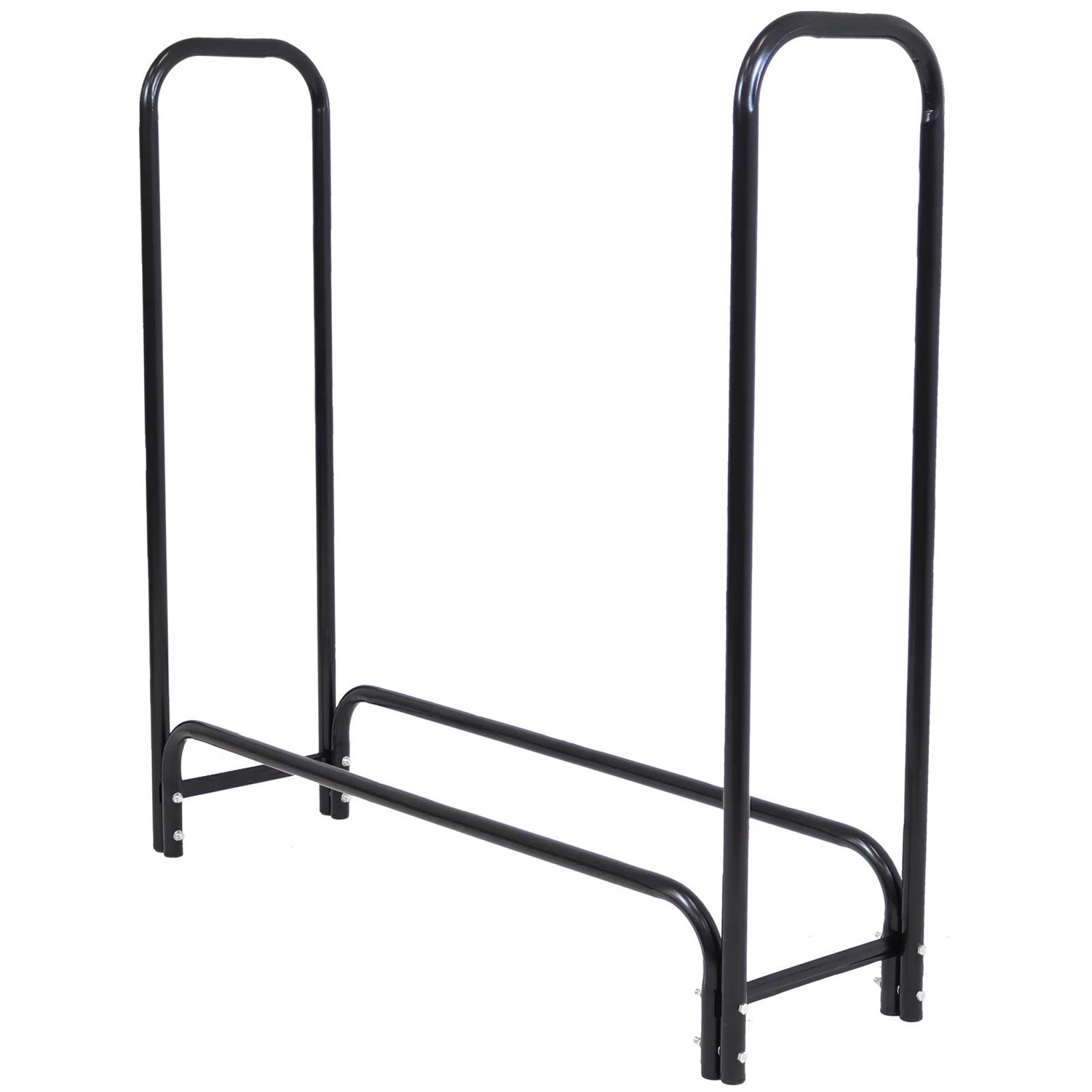 This 4-Ft Indoor Outdoor Black Metal Firewood Holder Log Rack with Cover will help keep your firewood handy whenever you need it. It features a durable tubular steel construction and black powder coated finish. It also stores up to 1/2 face-cord of wood.