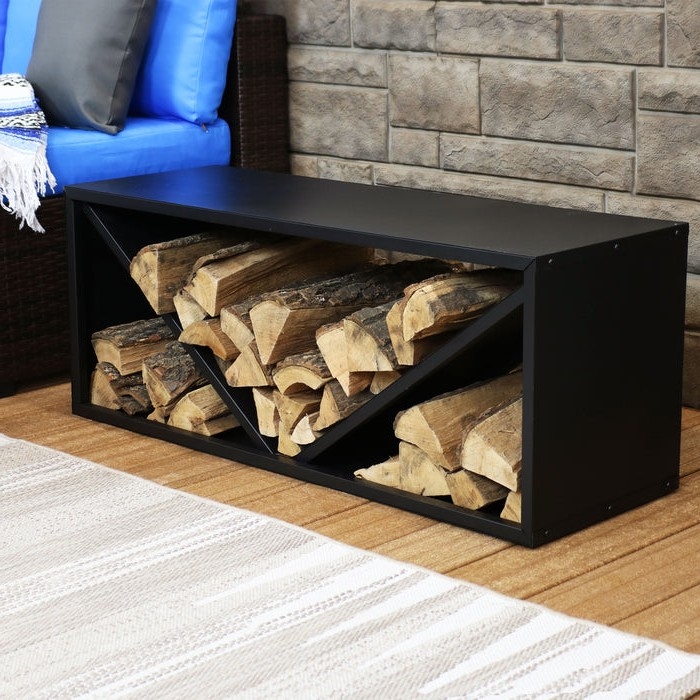 Have a sleek and stylish storage system for your firewood with this Black Indoor/Outdoor 41 inch Steel Triple Triangle Firewood Log Storage Rack. Constructed of durable steel with a sleek, black powder-coated finish for versatile style and strength. The 3 triangular compartments make it easy to keep your firewood neatly stacked. Sleek and modern geometric design.